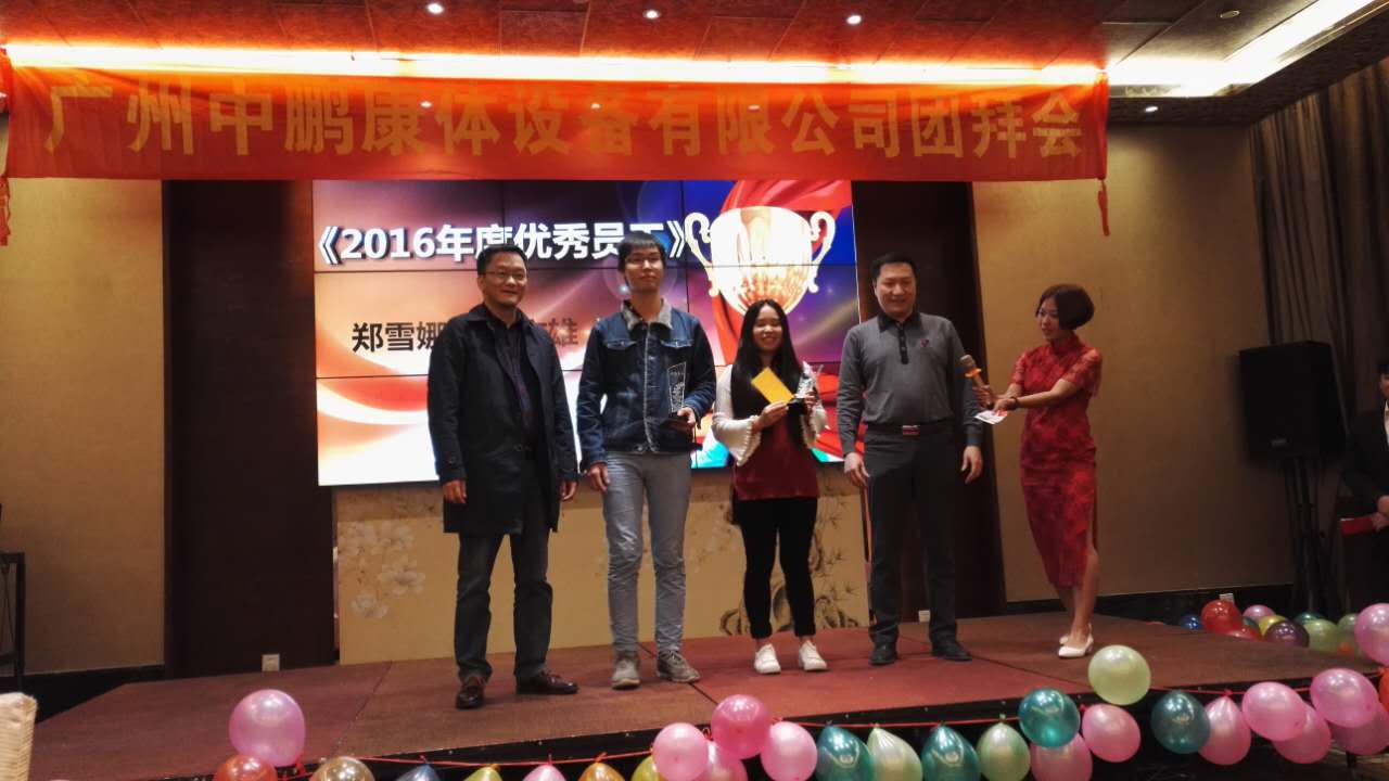 時光飛逝,歲月如梭,轉(zhuǎn)眼間忙碌的2016年已過去,充滿期待的2017年向我們走來。新的一年,孕育新的目標和希望。廣州中鵬康體設備有限公司2017年春節(jié)聯(lián)歡會于在廣州半島豪苑隆重舉行,中鵬全體員工,與公司領導歡聚一堂,共度聯(lián)歡。公司領導祝賀并發(fā)言,公司領導為優(yōu)秀員工頒發(fā)了證書和獎品,鼓勵他們戒驕戒躁,在新的一年起到模范帶頭作用,做出新的貢獻。